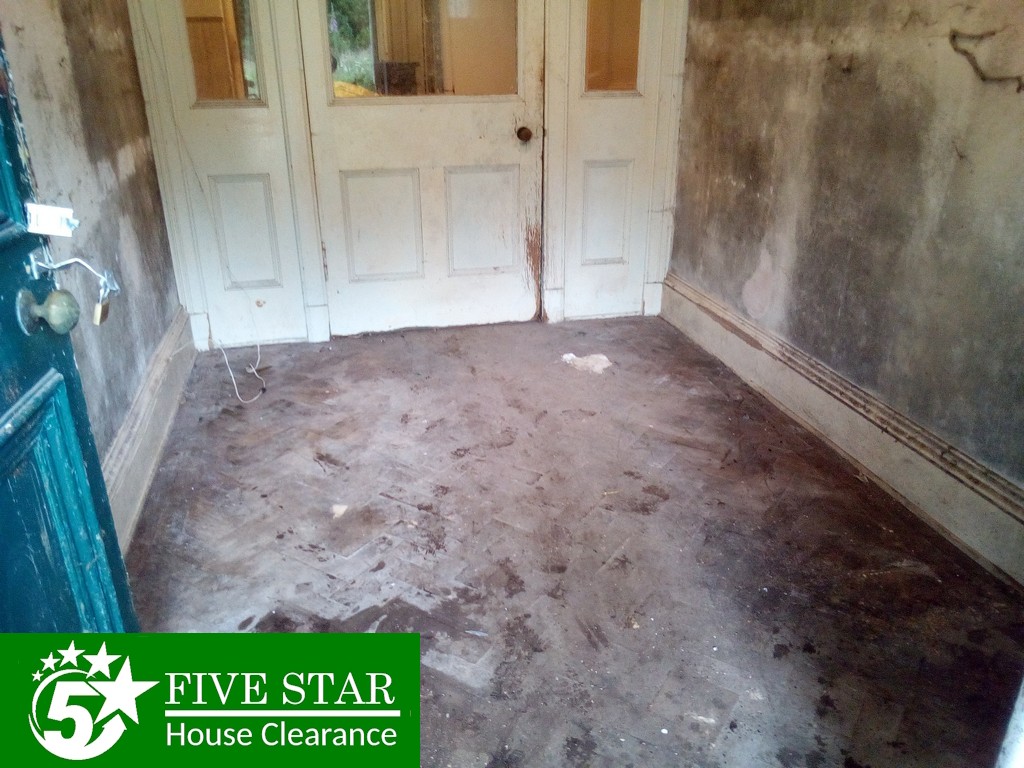 Find below before and after photographs of a 27 room hoarded mansion house we cleared. It took our hoarded house clearance specialists 4 weeks to clear the mansion from top to bottom.