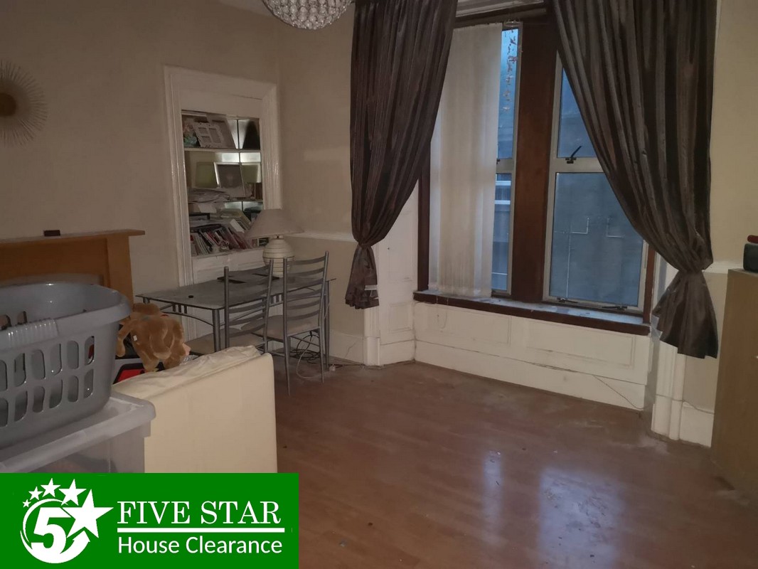 Our hoarded house clearance specialists were asked to clear a flat in Glasgow. A two-bedroom flat requiring clearance of all hoarded rubbish but to leave certain items of furniture in the property.